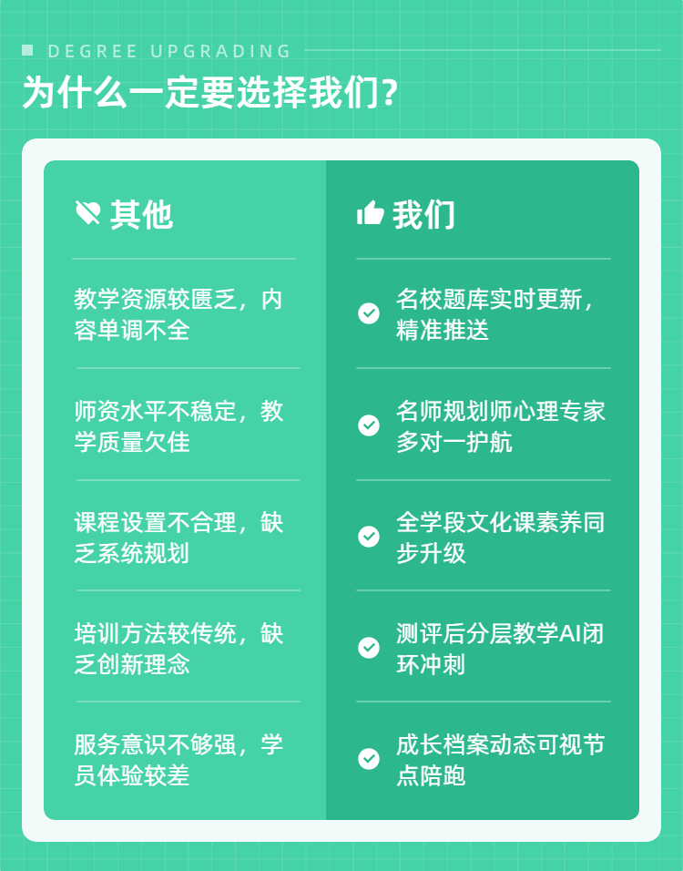 学业陪跑板块,主打动态化、个性化陪伴,在孩子成长的关键期跟进规划落地,及时调整优化方案,高效解决成长过程中的各类问题。